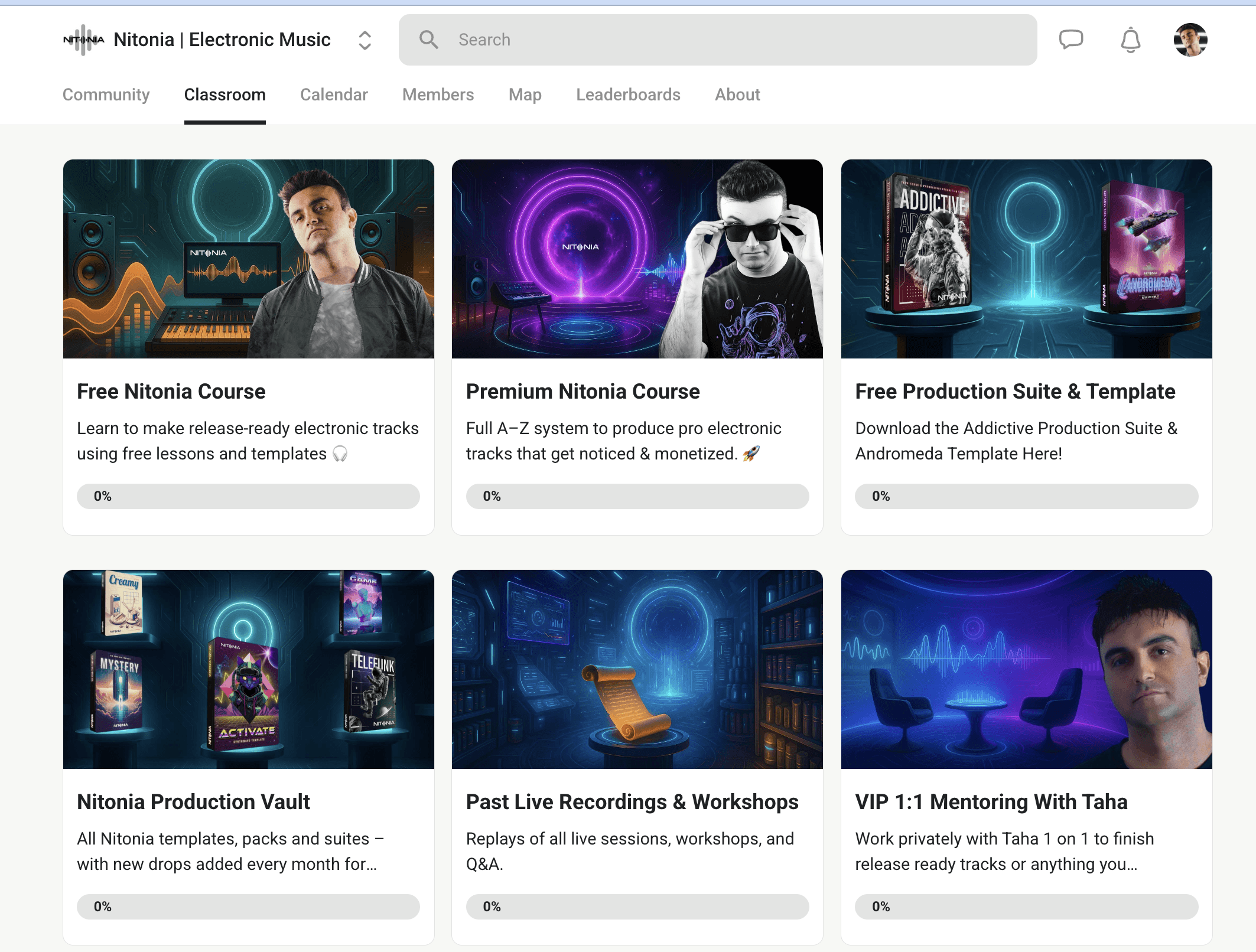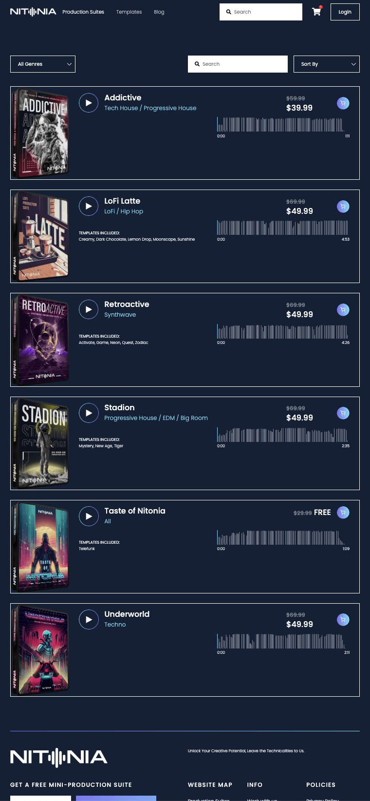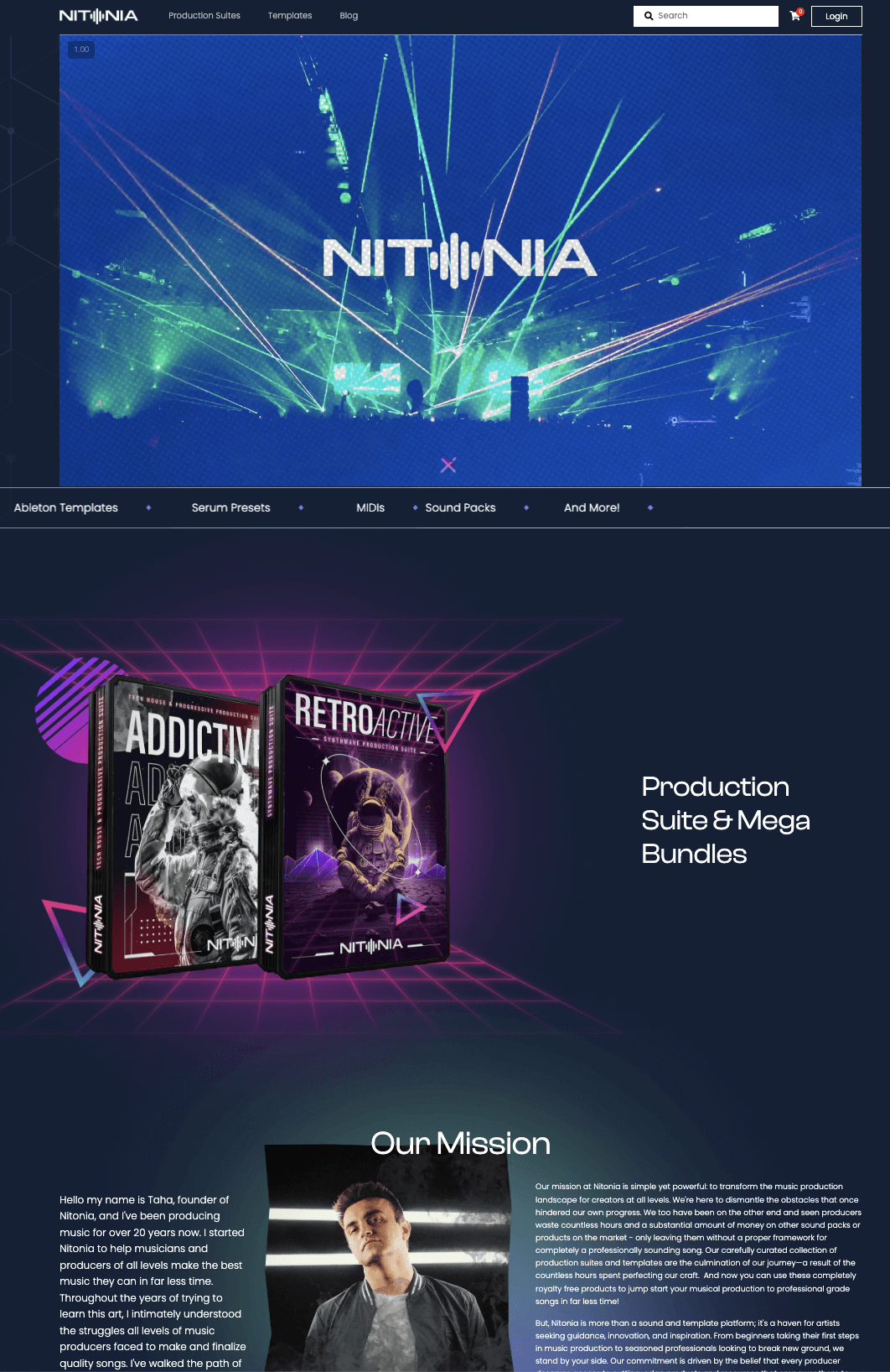 Started as an e-commerce website selling music production products and resources, then evolved into a full community platform for electronic music creators. Led product vision, platform build, content strategy, and brand direction end to end. Nitonia has now evolved into Velaris Collective, expanding the vision into a full A-to-Z academy and membership experience.